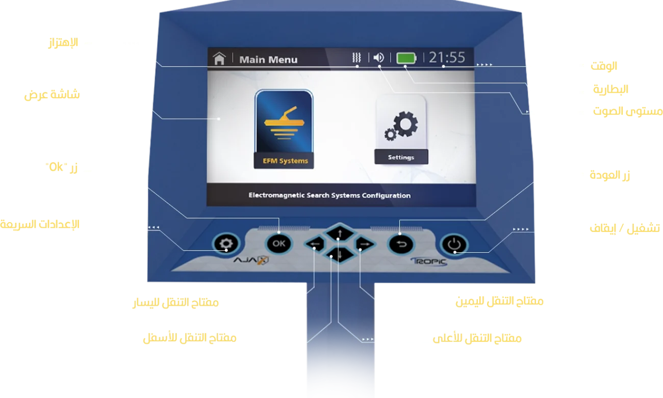 مختص بالتمييز المطلق والدقيق بين أنواع الأهداف الموجودة تحت الأرض وإظهار نوعها وهويتها ، وقد تم تزويد جهاز تروبيك بنظام بحث فريد من نوعه و متعدد المزايا.